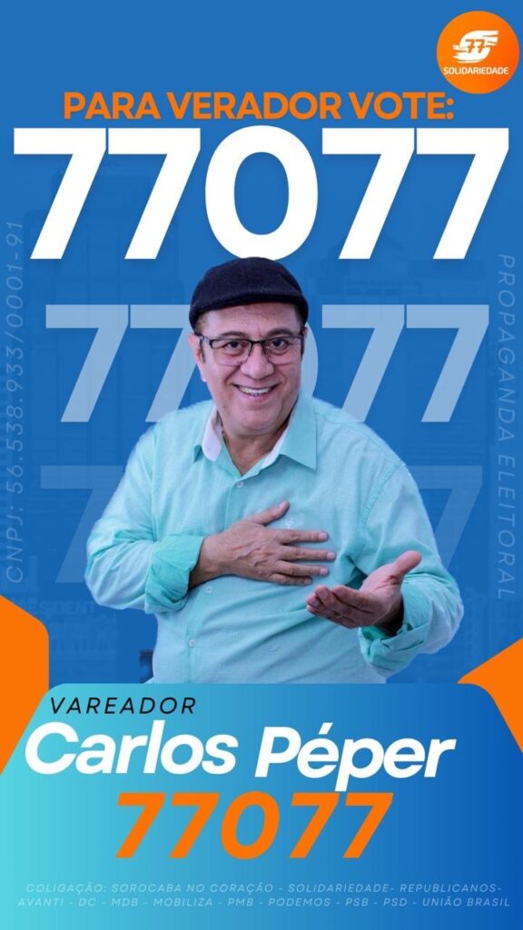 Carlos Péper nasceu em Florestópolis PR. Tem 62 anos de idade, atualmente é vice presidente do Solidariedade 77 de Sorocaba, onde se encontra filiado há mais de 6 anos, tendo presidido esse mesmo partido durante mais de 5 anos.